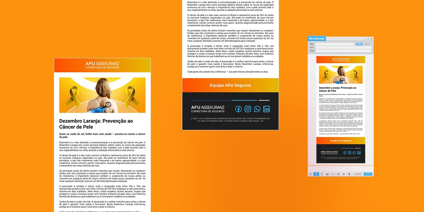 Dezembro é o mês dedicado à conscientização e à prevenção do câncer de pele. O Dezembro Laranja tem como principal objetivo alertar sobre os riscos da exposição excessiva ao sol e reforçar a importância dos cuidados com a pele durante todo o ano, especialmente no verão, quando a radiação ultravioleta é mais intensa.
